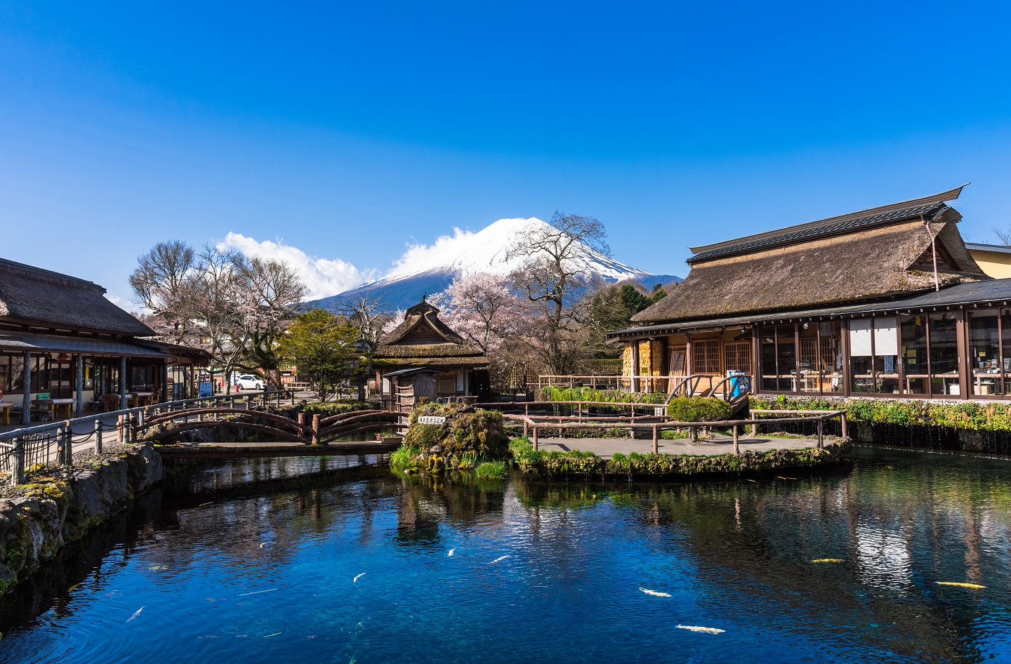 - Làng cổ Oshino Hakkai: Ngôi làng bình yên trầm mặc nằm dưới chân núi Phú Sĩ, nổi tiếng bởi có 8 hồ nước đặc biệt. Các hồ có cấu tạo phần đáy chủ yếu là nham thạch do quá trình kiến tạo địa chất và được nuôi dưỡng nhờ nguồn nước băng tuyết tan chảy từ đỉnh núi Phú Sỹ. Mỗi hồ nước được bàn tay con người chăm sóc giữ gìn nên toát lên vẻ trong sạch, thuần khiết. Tất cả làm nên nét thú vị kín đáo đủ để làm xao xuyến bất kỳ du khách nào có dịp được đặt chân đến đây.