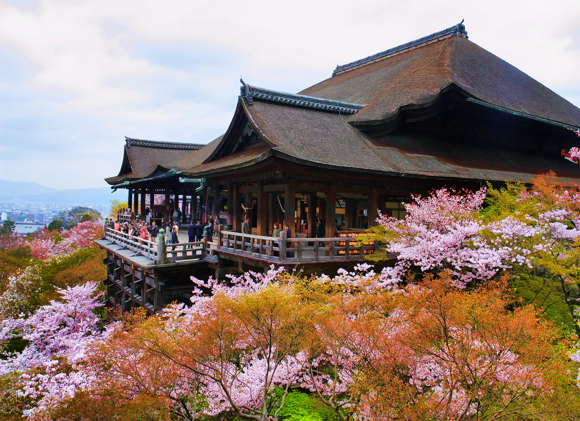 - Chùa Thanh Thủy (Kyomizu-dera) ngôi chùa nổi tiếng nhất Kyoto, và được UNESCO công nhận là Di sản thế giới. Chính điện chùa thờ Phật Quan Âm nghìn tay nằm trên vùng cao ngọn đồi Higashiyama. Để vào đến chùa, du khách sẽ đi qua một khu phố cổ mang đậm dấu ấn văn hóa Nhật Bản. Phía sau chùa là Thác nước Otowa No Taki chảy xuống theo đường dẫn thành 3 dòng nước được tin là rất linh nghiệm về “trường thọ”, “tình duyên”, “học hành thành đạt”, nếu người chiêm bái uống một ngụm nước ở một trong ba dòng nước trên thì điềm may sẽ đến.