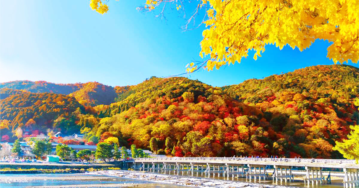 - Khu vực Arashiyama – Cầu Togetsukyo nơi có sông Hozu thơ mộng chảy qua. Trong mùa đông tuyết phủ trắng xóa tạo nên một bức tranh trắng tinh khôi tuyệt đẹp.