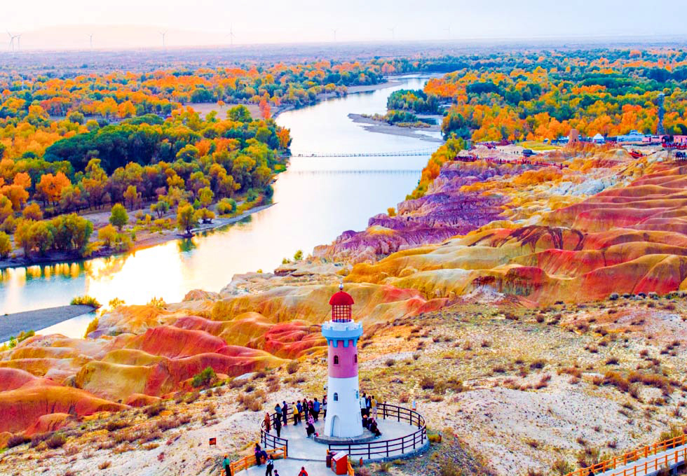 • Công viên địa chất Đan Hà – Với những ngọn núi đa sắc màu đan xen nhau (núi đá 7 màu) như bức tranh. Công viên có diện tích 510km vuông và được mệnh danh là nơi có vẻ đẹp siêu thực, nơi mà những ngọn núi 7 màu vô cùng sặc sỡ, mẹ thiên nhiên phải mất 24 triệu năm để hình thành nên những dãy núi đá kỳ diệu này. Nơi đây vô số ngọn đồi và thung lũng, tuyệt đẹp trong màu đỏ, vàng, cam, xanh lá cây, trắng, xám nhạt, xám và các màu sắc khác nữa, tạo ra cảm giác về một nơi có vẻ đẹp hiếm hoi, chỉ tồn tại trong chuyện cổ tích. Công viên địa chất quốc gia này được nhiều cơ quan truyền thông Trung Quốc bình chọn là một trong những khu vực địa mạo đẹp nhất ở Trung Quốc. (Bao gồm xe điện).