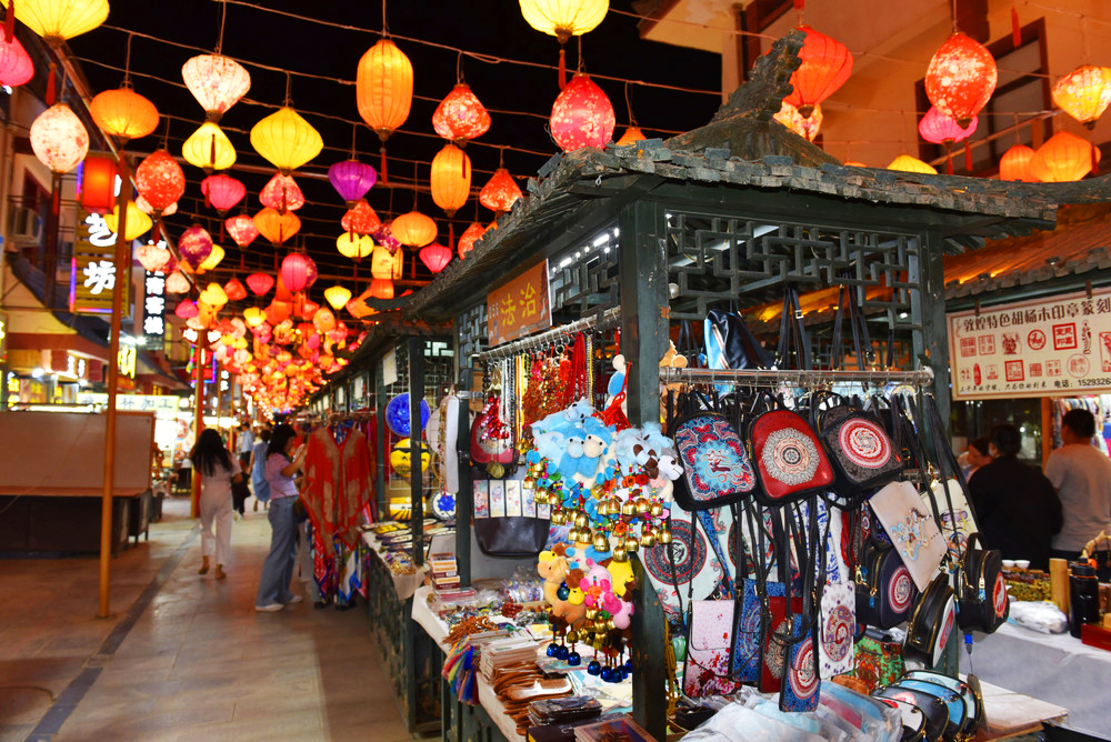Sau đó, đoàn sẽ tham quan Chợ đêm Châu Sa – môt khu chợ sầm uất ở Đôn Hoàng, bày bán đa dạng các món ăn đặc sản như thịt cừu xiên nướng, mì kéo Lan Châu, bánh bột ngô nướng, cùng các món ăn truyền thống của người Hồi và Uyghur.
