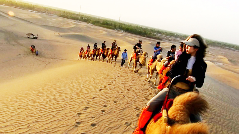 • Sa Mạc Minh Sa Sơn – được ví như phong cảnh Quan Ngoại đệ nhất, nơi đón số lượng du khách đông gấp 40 lần dân số địa phương. Minh Sa có nghĩa là cát kêu. Cát nơi đây hình hạt gạo, sắc vàng. Trải nghiệm cưỡi Lạc Đà trên sa mạc.