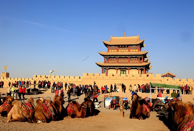 • Gia Dục Quan Thành Lầu (di sản Thế Giới) – đó là đoạn hiểm yếu nhất phía cực Tây của Vạn Lý Trường Thành, là đoạn trường thành được bảo quản toàn vẹn nhất, được mệnh danh là ‘Thiên hạ đệ nhất hùng quan”. Gia Dục Quan, khởi điểm phía tây của Trường Thành nằm trên địa bàn thành phố Gia Dục Quan, tỉnh Cam Túc, được xây dựng vào năm thứ 5 Hồng Vũ (1372). Ngoài ra còn có tên gọi là Hòa Bình Quan, vì nơi đây chưa từng có chiến loạn. Một truyền thuyết nổi tiếng đã kể lại tỉ mỉ kế hoạch xây dựng cửa ải. Theo đó, khi Gia Dục quan được lên kế hoạch, quan phụ trách đã yêu cầu người phác thảo ước lượng chính xác số gạch cần đến và người phác thảo đã cho ông một con số. Vị quan nghi ngờ ước tính của ông, hỏi vậy liệu có đủ không, người phác thảo đã thêm một viên gạch. Khi Gia Dục quan hoàn thành, có một viên gạch còn sót lại, được đặt lỏng lẻo trên một cổng và nó vẫn còn lại cho đến nay.